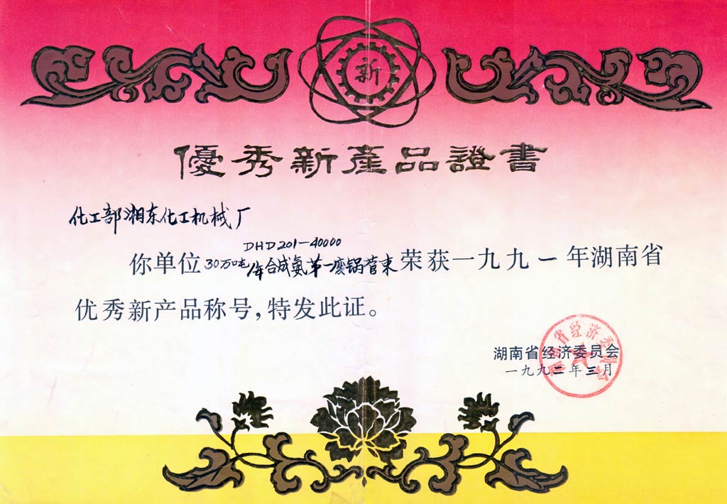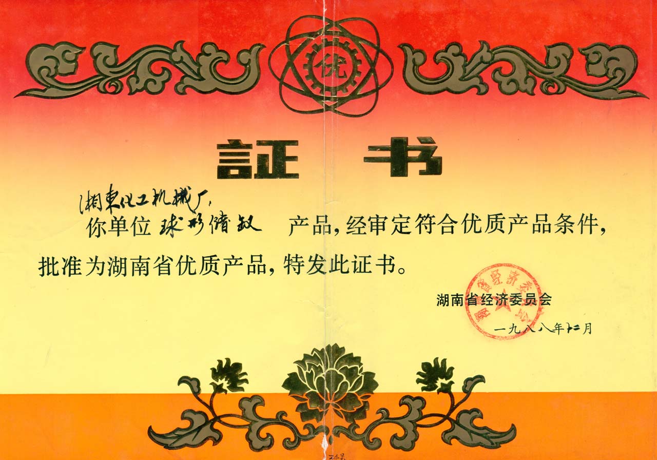 球形貯罐優(yōu)質(zhì)產(chǎn)品證書(shū)