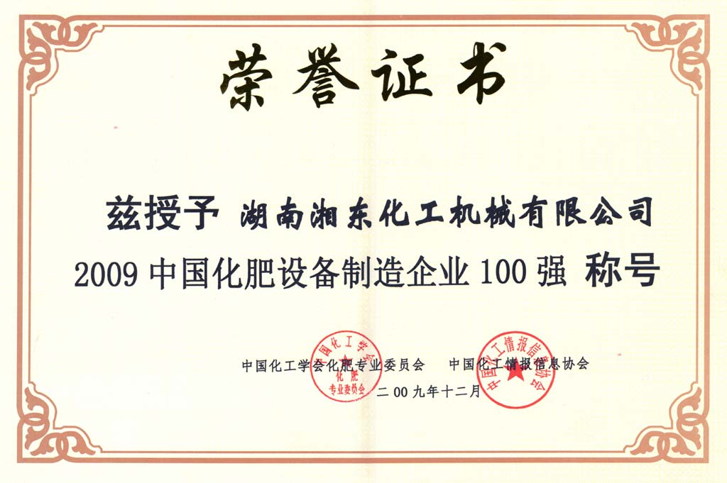 中國(guó)化肥設(shè)備制造企業(yè)100強(qiáng)