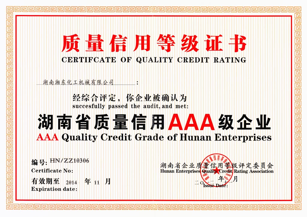 湖南省質(zhì)量信用A級(jí)企業(yè)